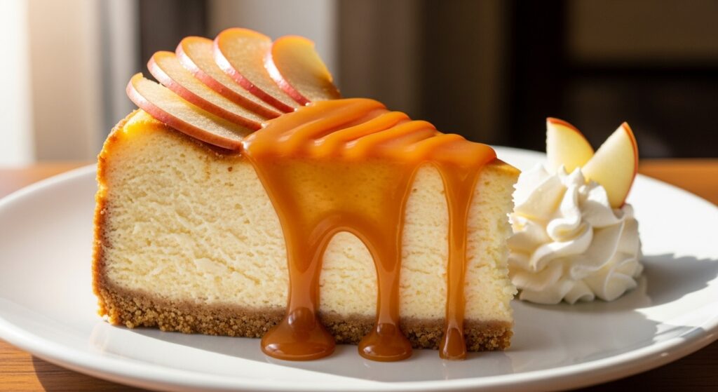 • Garnish creatively: Arrange thin apple slices in a spiral pattern on top of the cheesecake before drizzling caramel for a bakery-style finish.