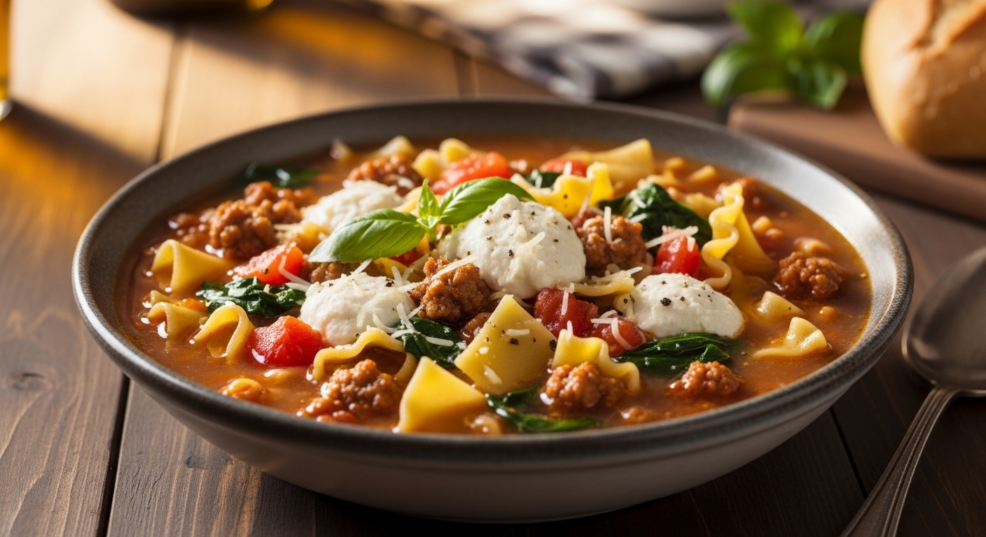 All the cozy comfort of classic lasagna — but in a warm, hearty soup! This easy Lasagna Soup recipe combines Italian sausage, rich tomato broth, tender pasta, and gooey cheese for a dish that’s perfect for chilly nights. It’s quick to make, family-friendly, and delivers all the beloved lasagna flavors in a comforting bowl.